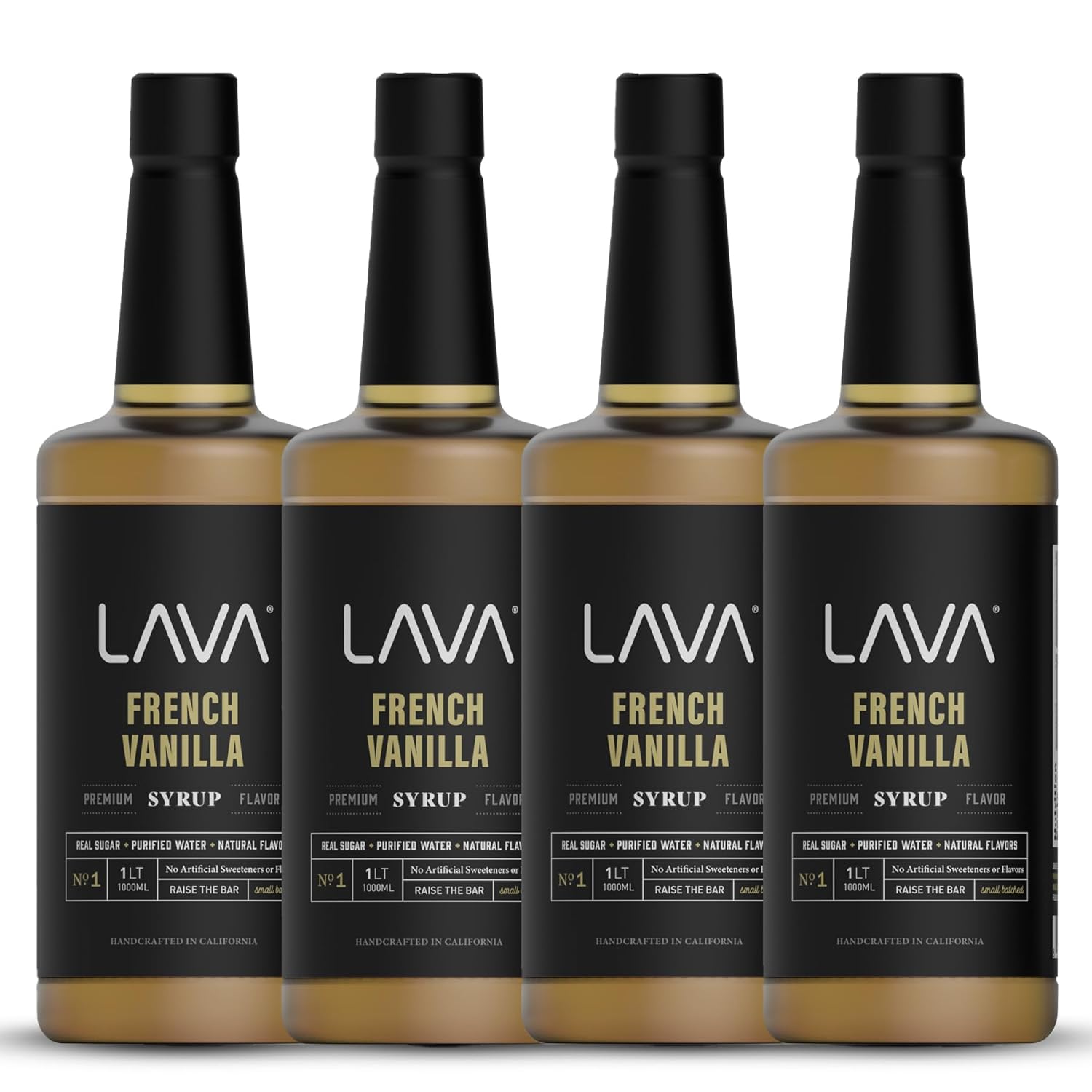 (4-Pack) LAVA Premium French Vanilla Syrup, Natural Vanilla Coffee Sweetener, 33.8oz (1-Liter), Made with 100% Sugar, No Artificial Sweeteners, Flavors, or Colors