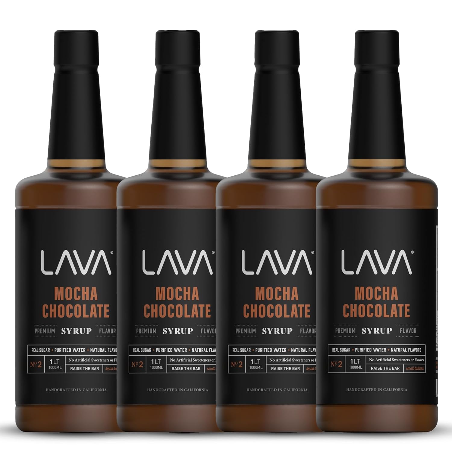 (4-Pack) LAVA Premium Mocha Chocolate Syrup, Chocolate Coffee Sweetener, 33.8oz (1-Liter), Made with 100% Sugar, No Artificial Sweeteners, Flavors, or Colors.