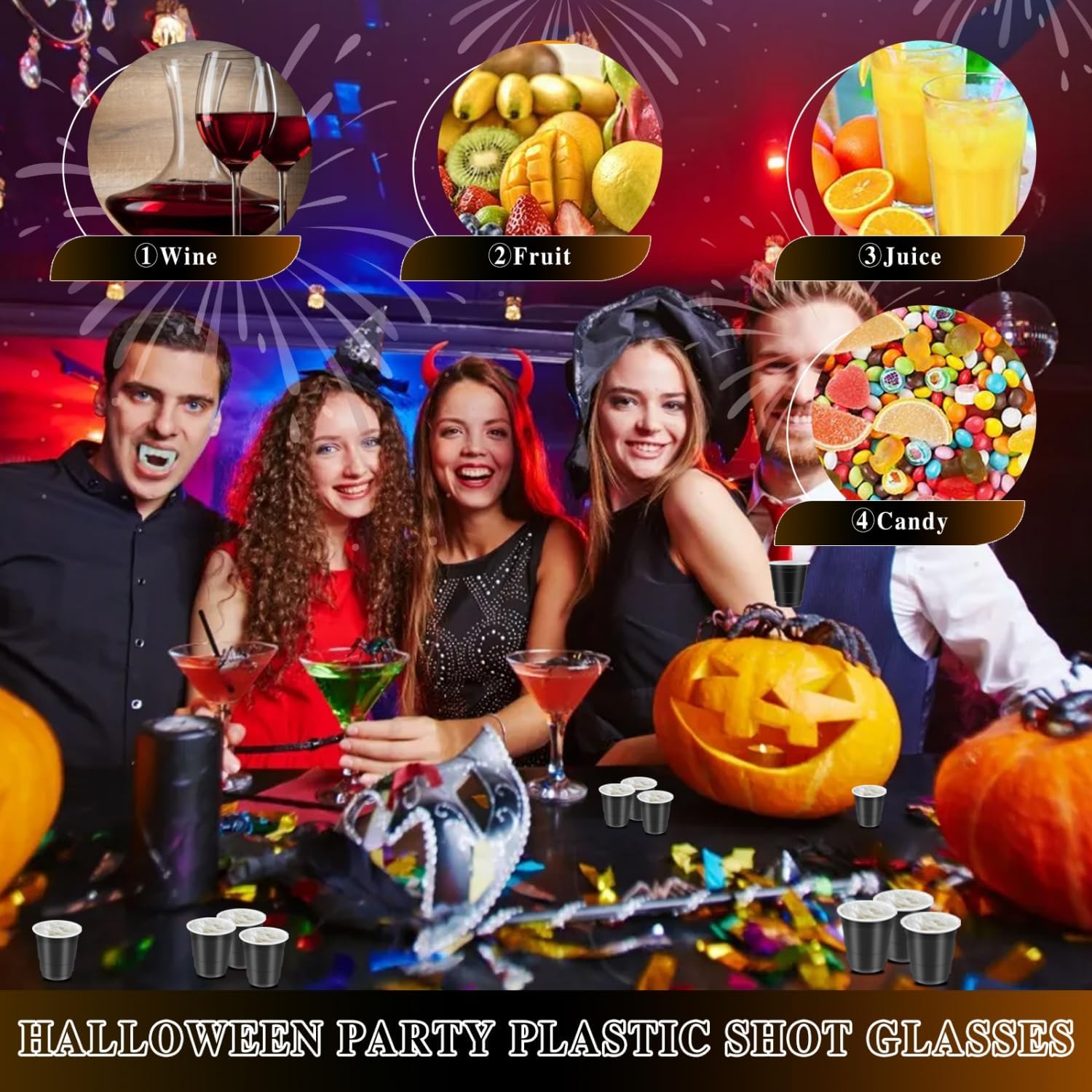 100 Pack 2 oz Plastic Shot Cups Disposable, Mini Disposable Shot Glasses Jello Shot Cups, 2 oz Party Cups for Wedding, Party Favor, Beer Taste Serving, Snacks, Tastings (Black)