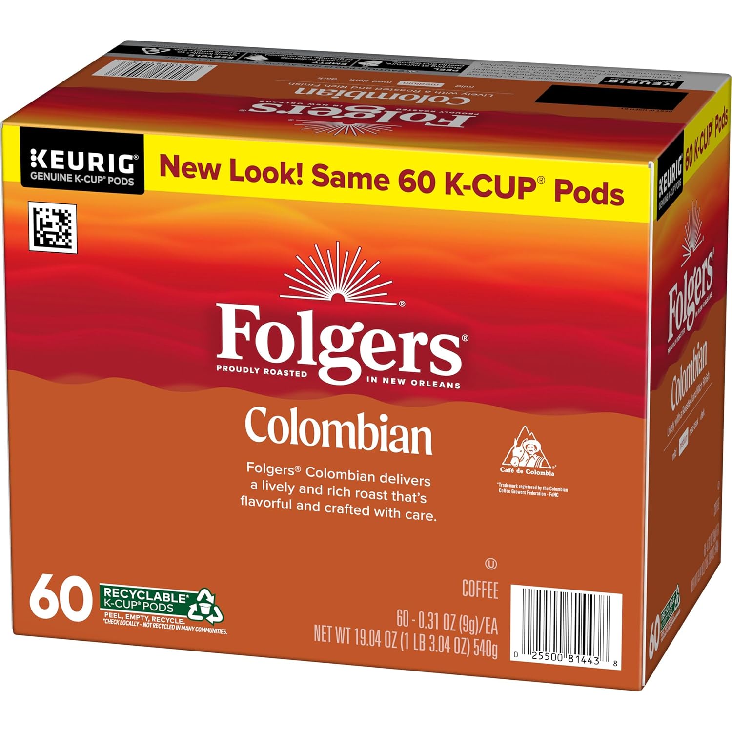 - Contains six (6) boxes of 10 Folgers Colombian coffee K-Cup pods (60 total)