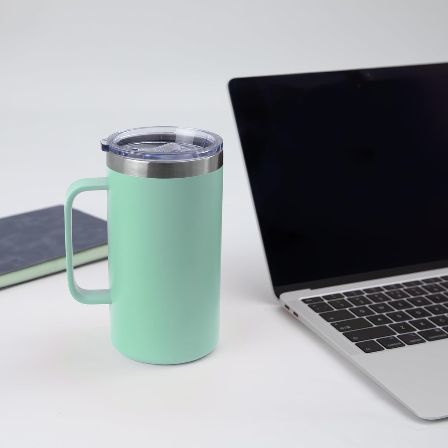 DOMICARE 24oz Mug with Handle and Lid, Stainless Steel Coffee Mug, Travel Mug with Handle, Double Wall Vacuum Coffee Tumbler, Reusable Insulated Cup, Mint Green, Pack 8