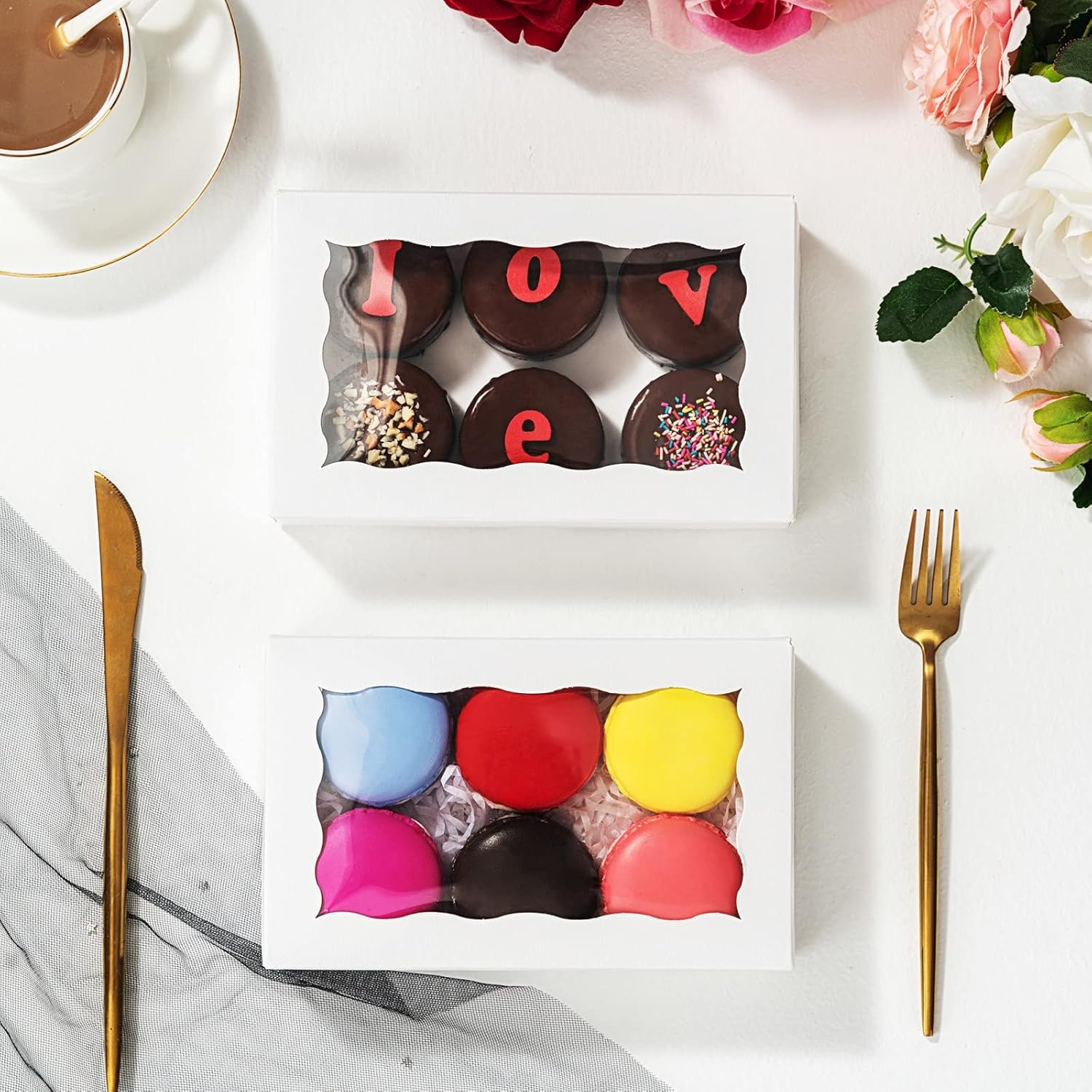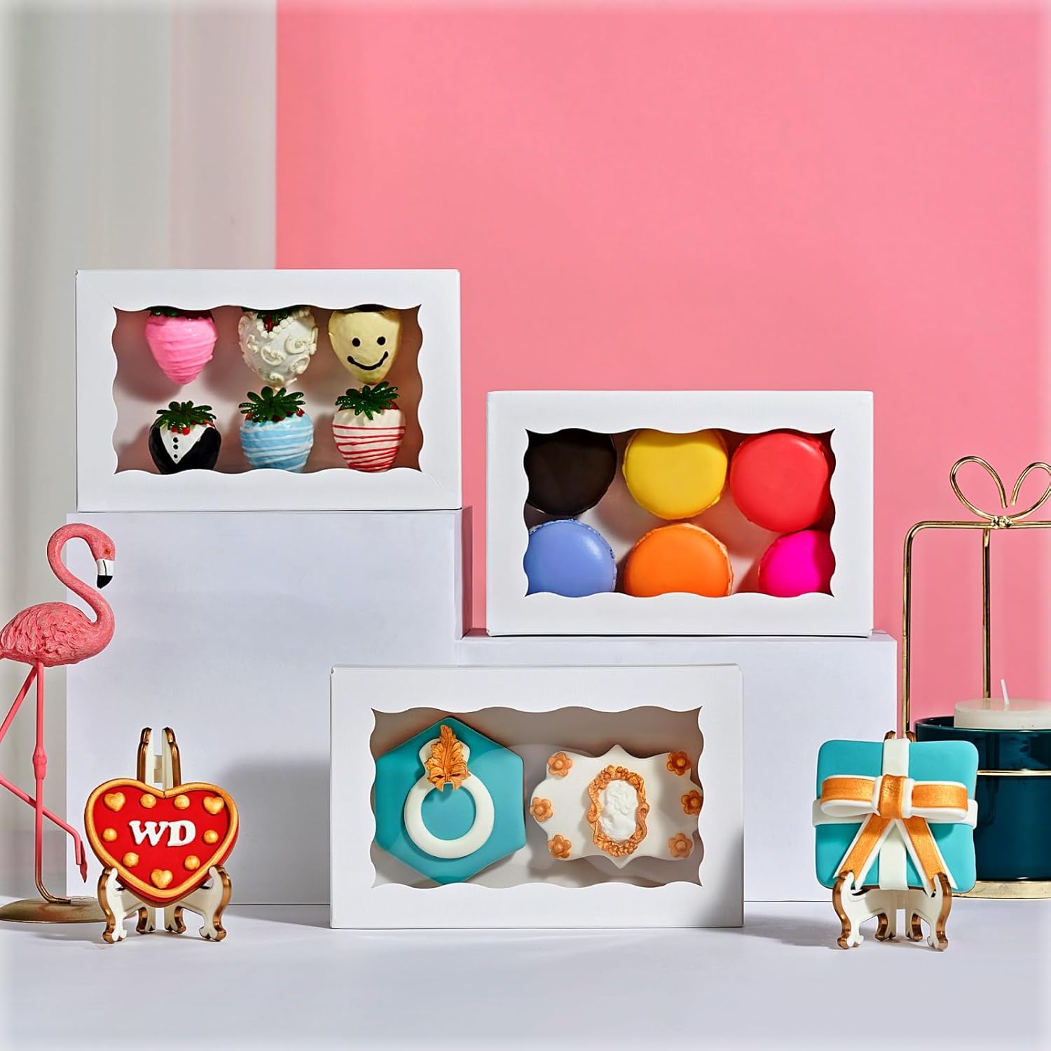 - 【Use】Pastry boxes perfect forcookies,macaron,chocolate covered strawberries,chocolate bomb,mini cake,cookies,macaron,truffle,browine, donut,small treat