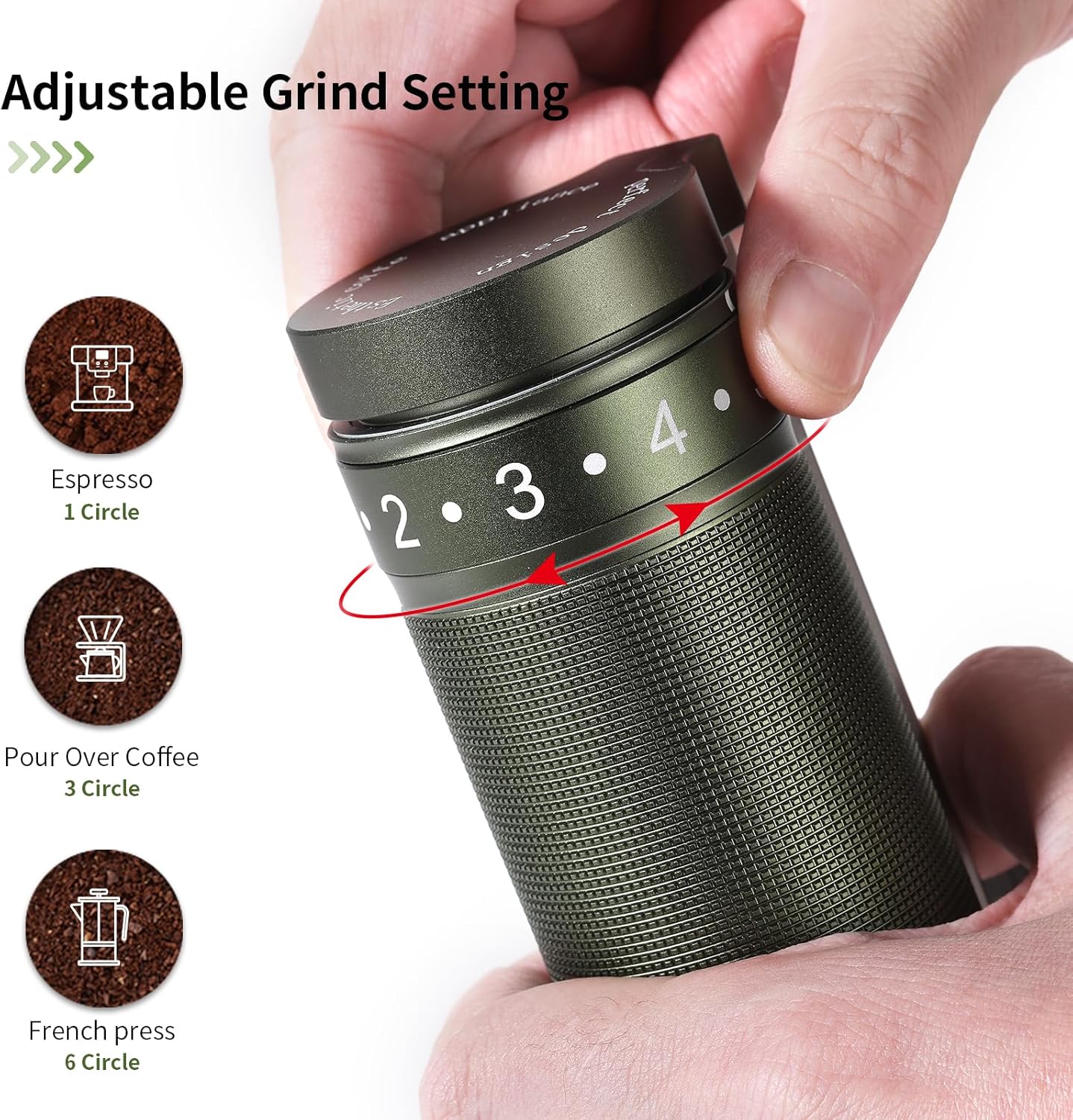 - Adjustable Grinding Settings:The external adjustable grind scale offers 9 precision settings, allowing you to customize your coffee grind to perfection.Clockwise for fine powder, counterclockwise for coarse grind – each notch on the scale is equivalent to 10 notches on a standard grinder, catering to the diverse needs of all coffee enthusiasts.