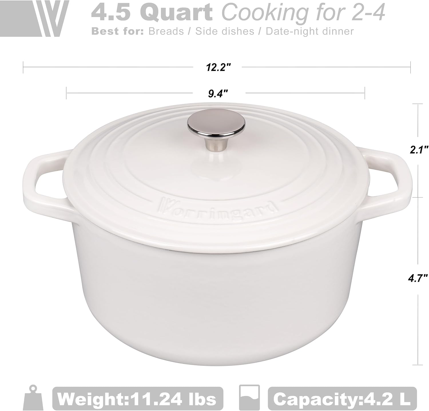 Enameled Cast Iron Dutch Oven Pot with Lid, for Bread Baking, Round Bread Oven- include Sourdough Bread Baking Supplies Set, 4.5QT, White
