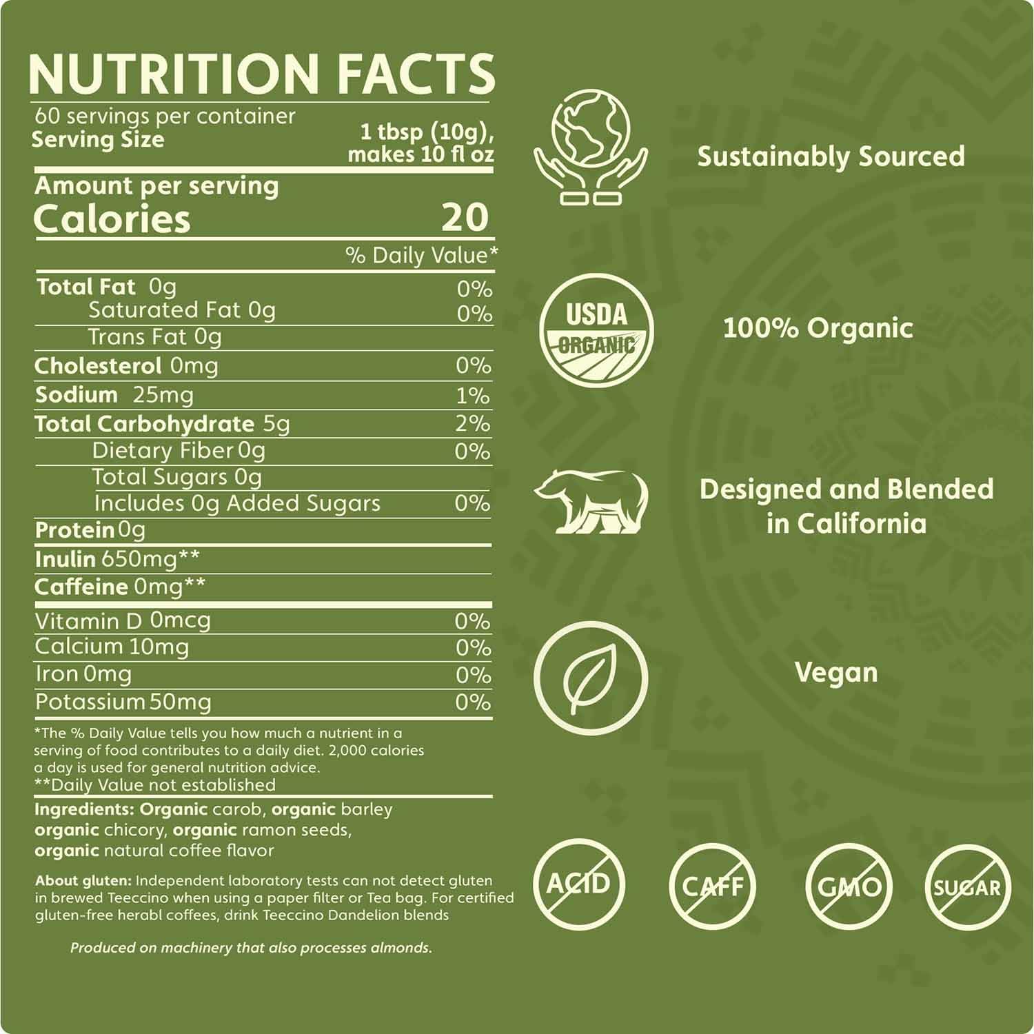 - NATURALLY CAFFEINE FREE - Experience an energy boost from nutrients, not stimulants. Perfect any time of day or night because it won’t interfere with sleep. Sugar-free Teeccino is a treat for the whole family.