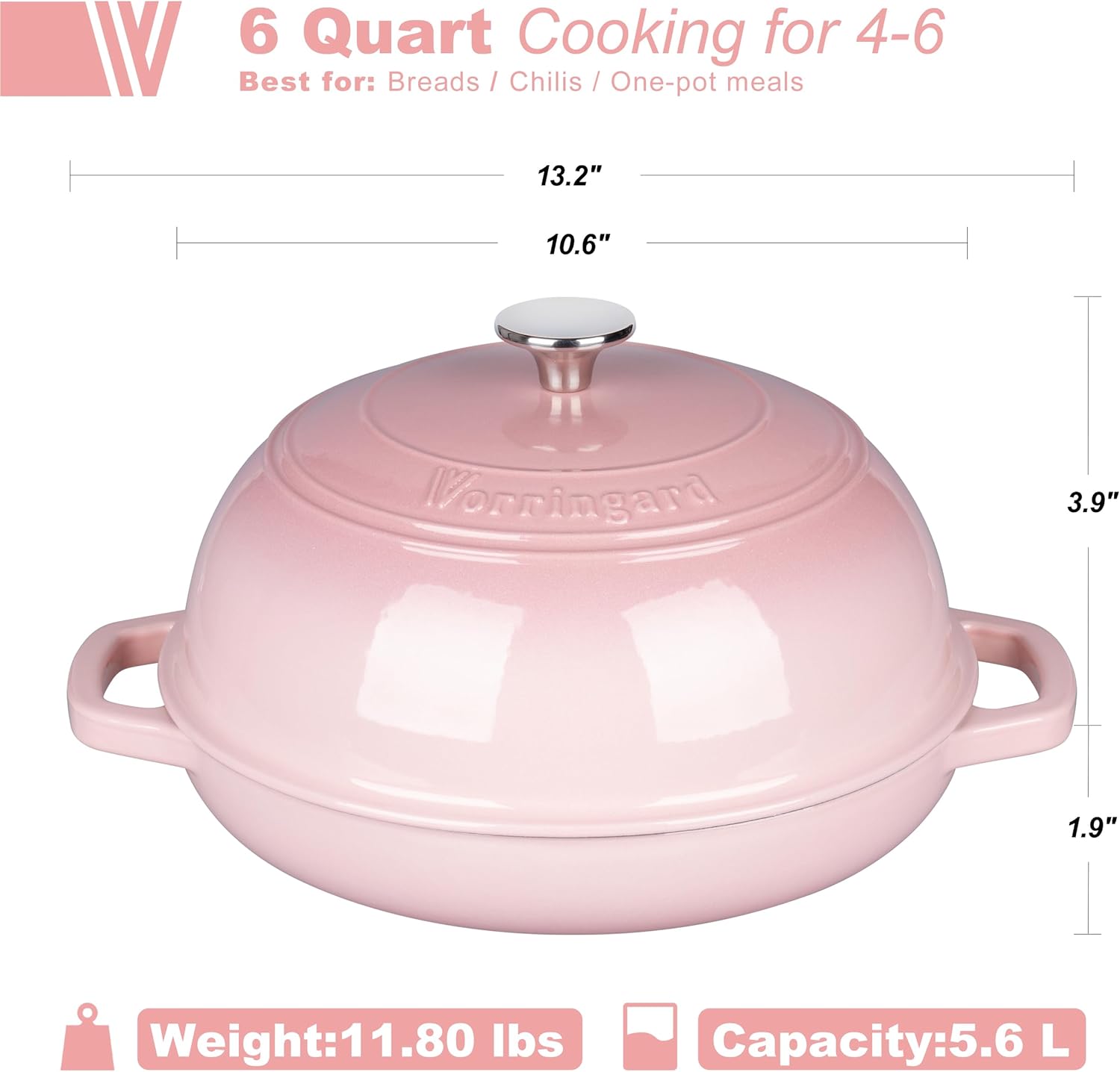 Enameled Cast Iron Dutch Oven Pot with Lid, Bread Oven for Sourdough Bread Baking, Dutch Ovens with Bread Proofing Basket& Baking Supplies Set, 6 Quart, Pink