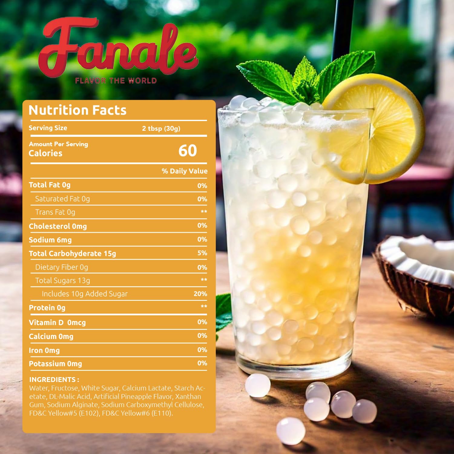 - 𝐍𝐨𝐧-𝐆𝐌𝐎 𝐀𝐧𝐝 𝐆𝐥𝐮𝐭𝐞𝐧-𝐟𝐫𝐞𝐞: Fanale Drinks Popping Boba balls are a healthy addition to your drinks and desserts. They are fat-free, non-GMO, and gluten-free, making them healthy, natural, and perfect for people opting for an organic option.