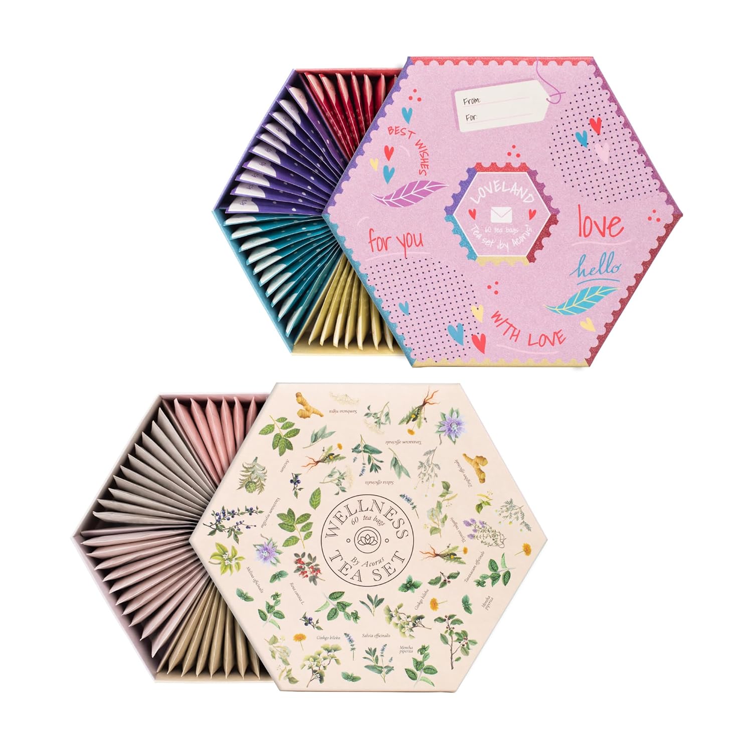 ACORUS Wellness & Loveland Tea Sets, Natural Assorted Herbal Tea Hamper Box Gift Sets, Large Variety of 120 Tea Bags, 12 Flavours