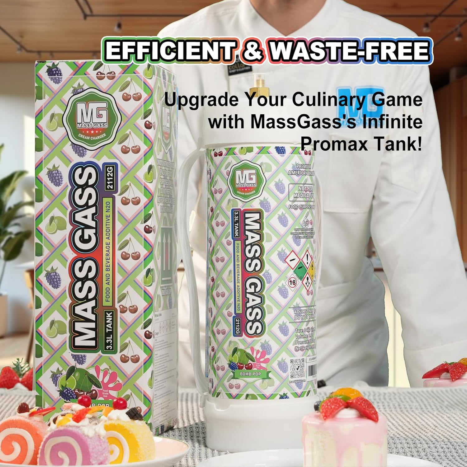 Whipped Cream Charger 3.3l Tanks,Mass Gass 2112g Whip Cream Chargers Cylinde,Food Grade 99.9%-Purity (1 Cylinder BOMB POP)