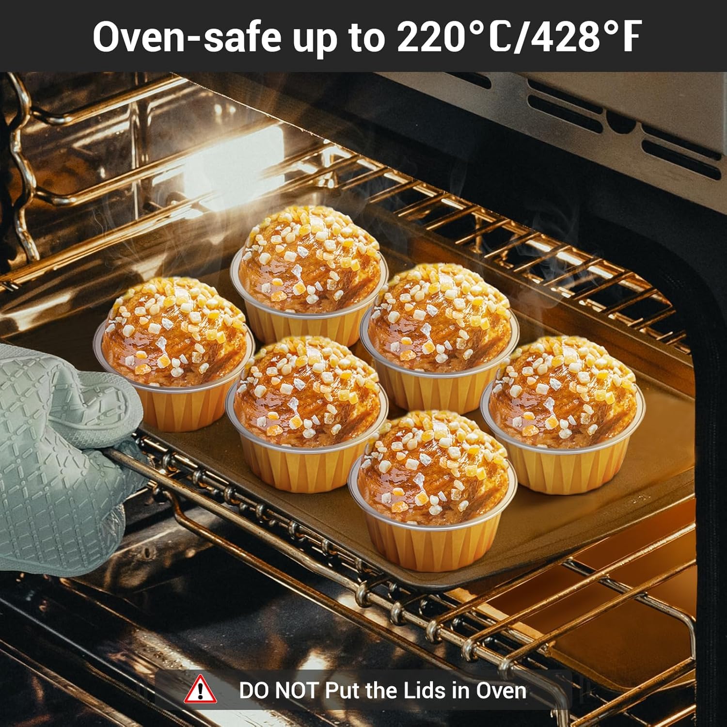 EUSOAR Gold Baking Cup, 400pcs 5oz Mini Foil Ramekins Cupcake Liners with Lids for Oven Baking, Disposable Aluminum Dessert Cheesecake Creme Brulee Cups Pan Containers