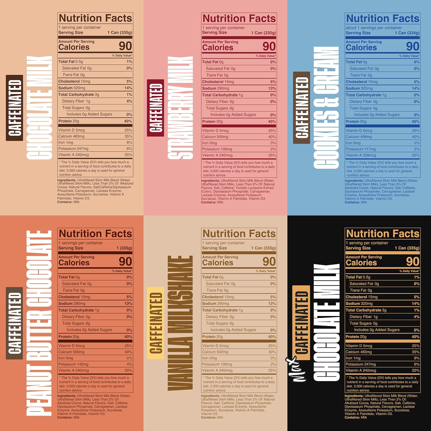 Spylt High Protein Milk - 6 Flavor Variety Pack with 60mg Caffeine & 20g Protein - 90 Calories, Ready to Drink, Sugar Free, Lactose Free Milk, Perfect for Workout Recovery & Afternoon Pick Me Up - 12 Count