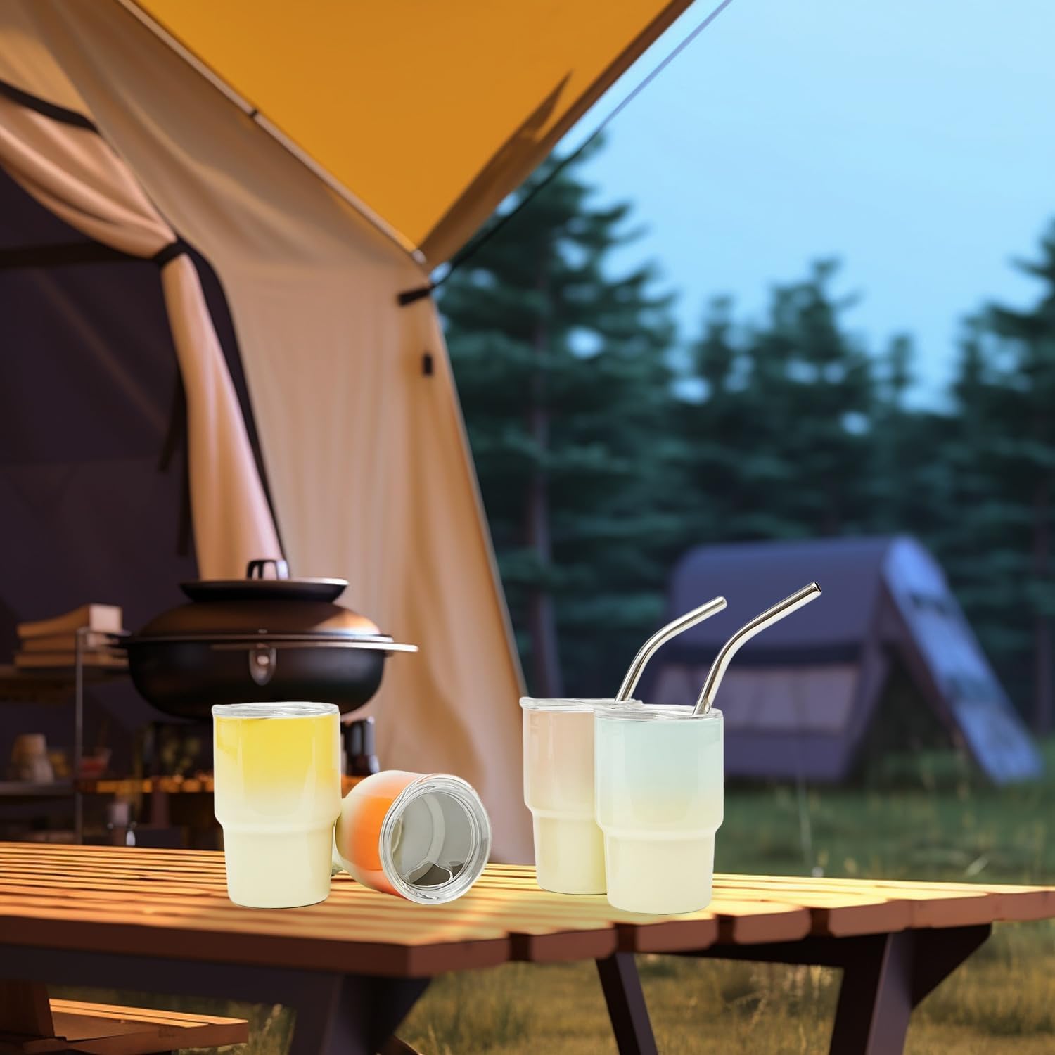 - Party Portable Set: Each set contains 6 gradient mini cups + silicone-sealed lids + bendable stainless steel straws + cleaning brush set. 3oz palm-sized design easily slips into pockets/makeup bags. Each weighs only 80g, ideal for outdoor hiking/music festival parties.