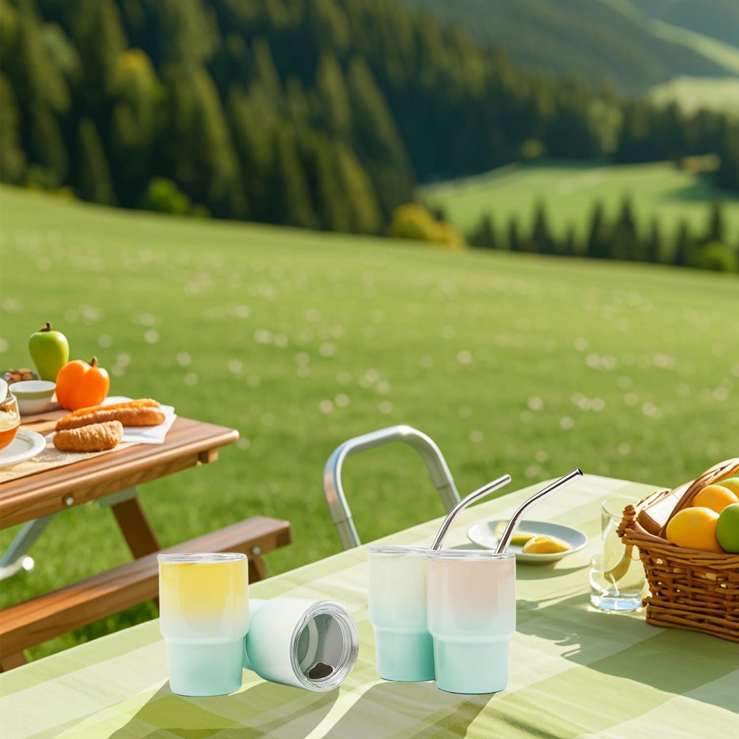 - Party Portable Set: Each set contains 6 gradient mini cups + silicone-sealed lids + bendable stainless steel straws + cleaning brush set. 3oz palm-sized design easily slips into pockets/makeup bags. Each weighs only 80g, ideal for outdoor hiking/music festival parties.
