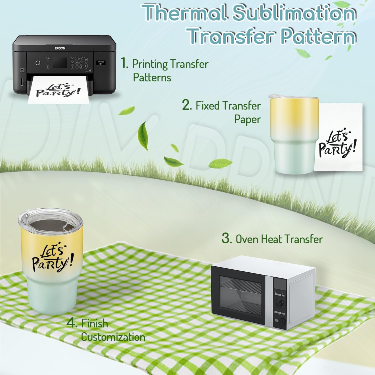 - DIY Heat-Transfer Customization: The polymer heat-transfer coating on the cup body allows personalized designs using ovens (385-400°F) or heat presses. Create your unique patterns—tested to withstand 50+ washes without fading.