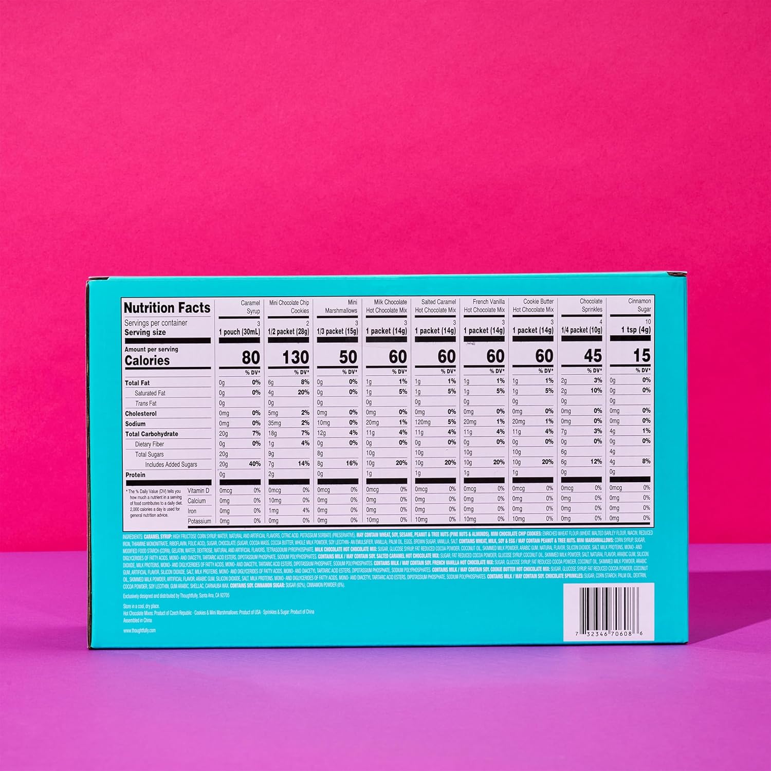 - HOT CHOCOLATE BAR - Contains four hot cocoa mix flavors and an array of delicious toppings to garnish