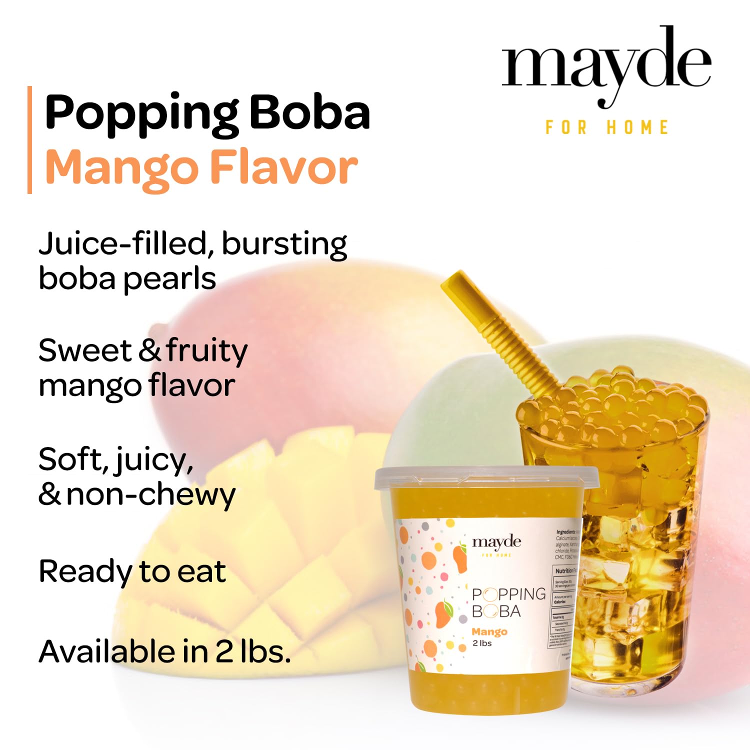 Mayde Popping Boba Pearls, Bubble Tea Pearls for Drinks, Desserts, & Breakfast Bowls (Mango, 2 Pounds)