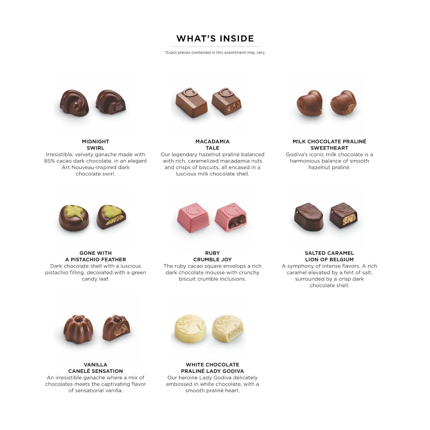 - Gourmet Belgian Quality: Every piece reflects nearly a century of Godiva’s artisanal tradition; expertly made in Belgium by our expert chocolatiers using time-honored techniques and premium non-GMO ingredients; Kosher certified for a thoughtful and inclusive chocolate experience