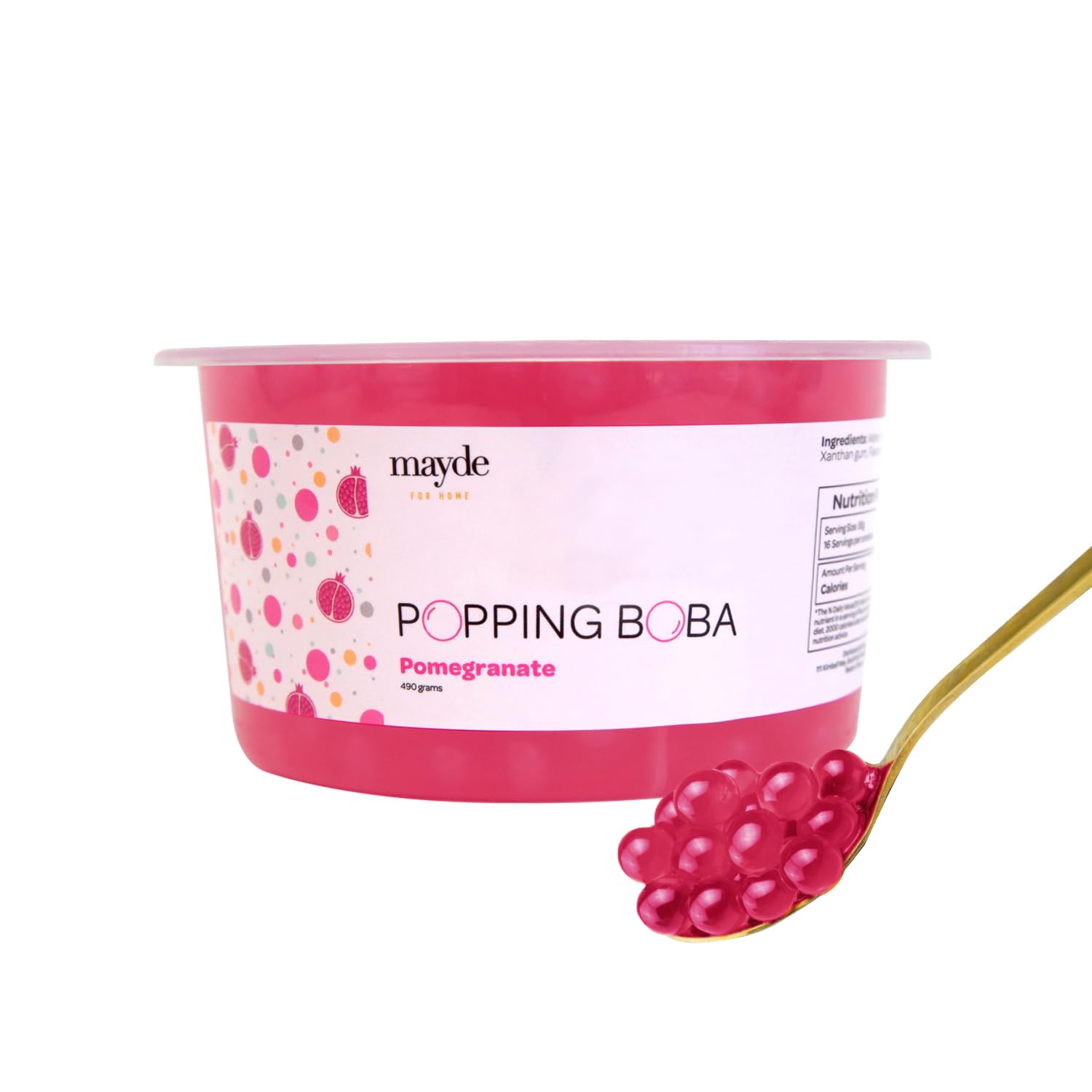 Mayde Popping Boba Pearls for Drinks, Desserts, & Breakfast Bowls, Pomegranate Flavor, 490 grams