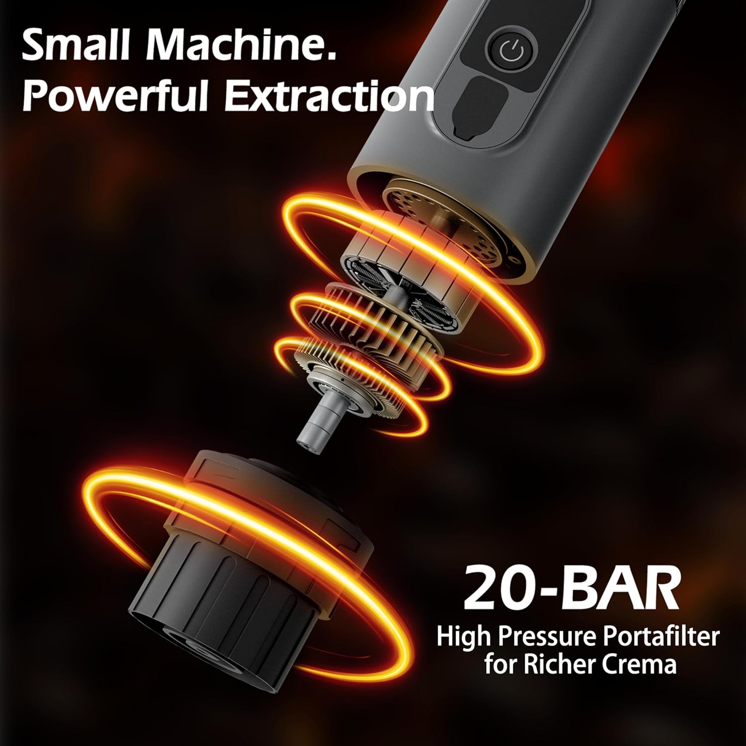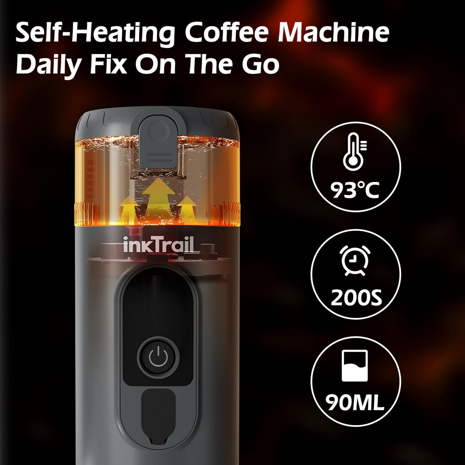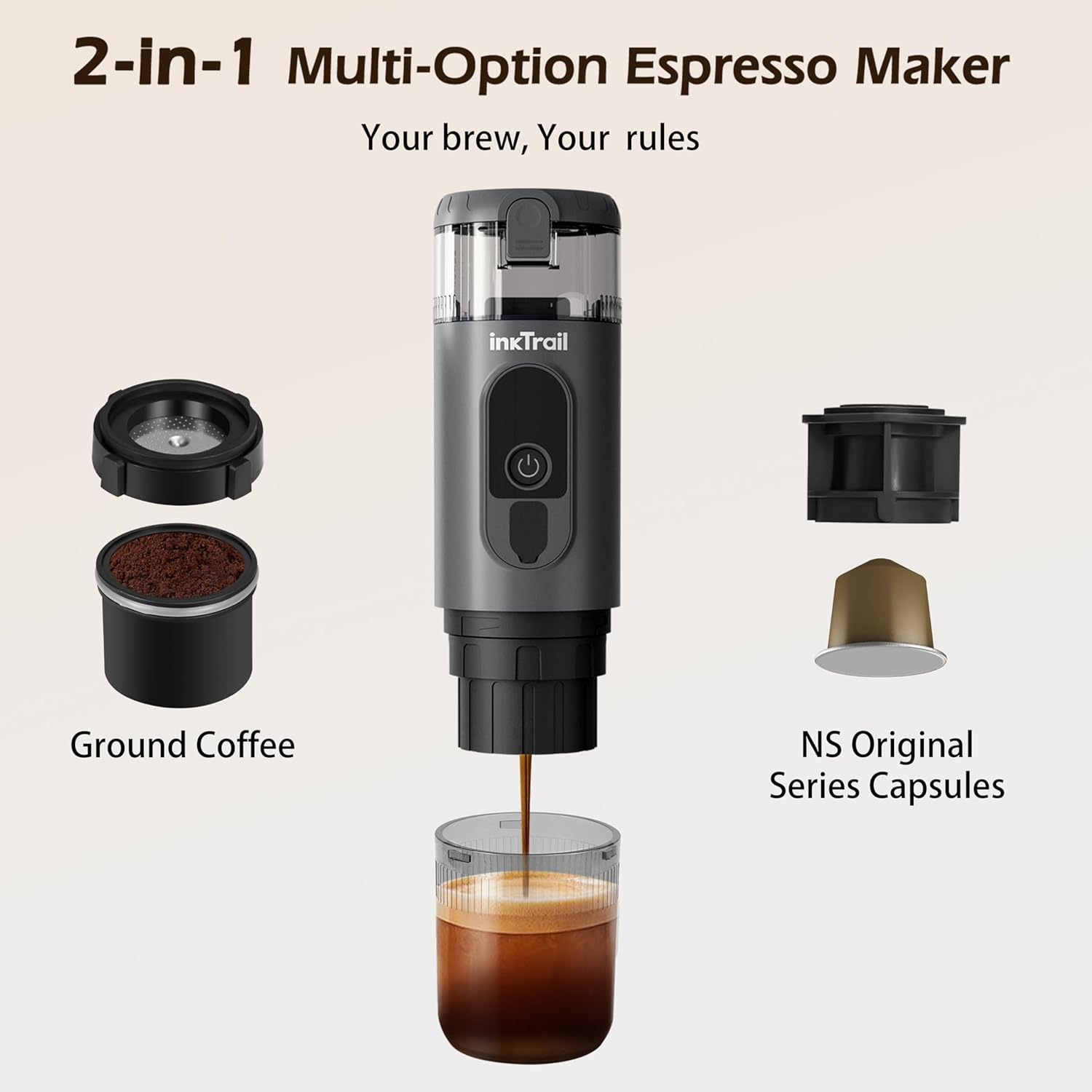 InkTrail Portable Electric Espresso Machine,Travel Coffee Maker for Camping, Self-Heating with Rechargeable Battery, Compatible with Ground Coffee & NS Original Capsule for Car, RV, Hiking, Office