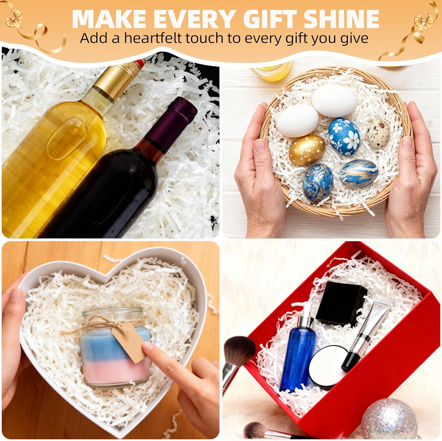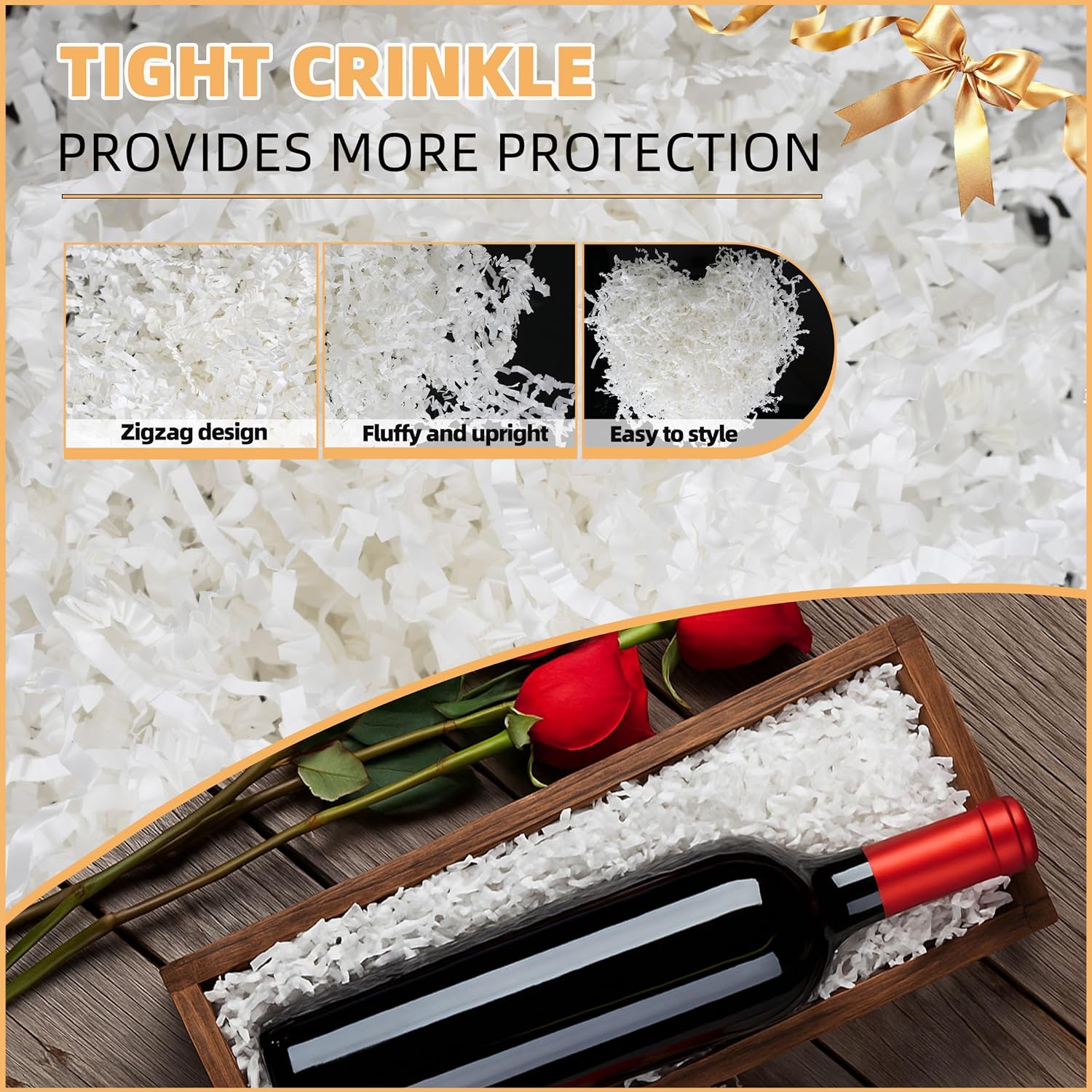 - The Perfect Gift Filler: Our crinkle paper shred is the perfect filling and packaging material for gift baskets, gift boxes, wedding party favors, and gift bags. Crinkle cut paper protects fragile items, adds a touch of elegance, and filler for gift baskets & boxes creates a stunning unboxing experience, making every gift feel extra special.