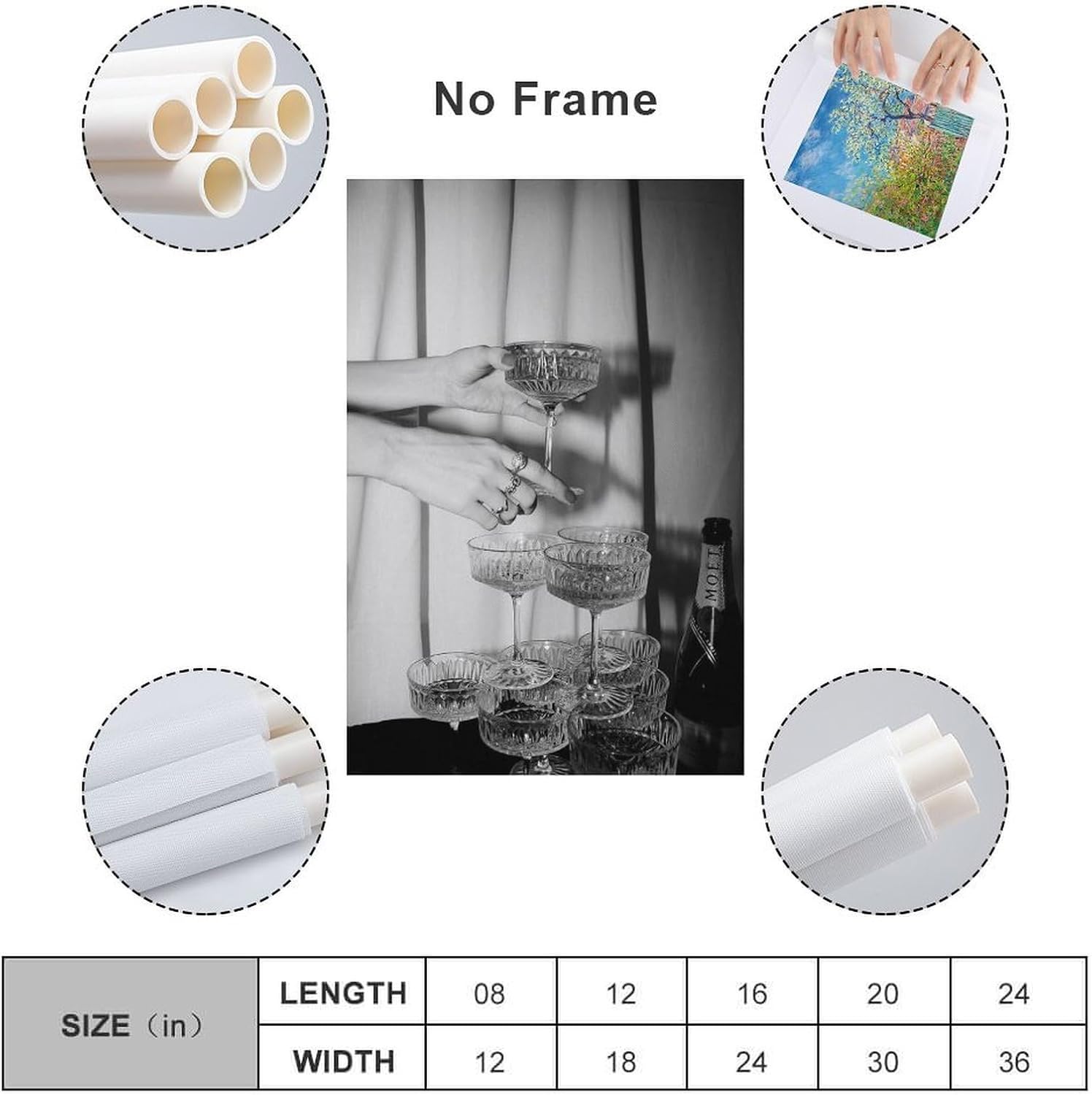 Black And White Champagne Glasses Canvas Wall Art Retro Funky Bar Cart Art Decor Retro Champagne Tower Poster Vintage Photography Wall Art Kitchen Dining Room Pub Prints 20x30inch(50x75cm)