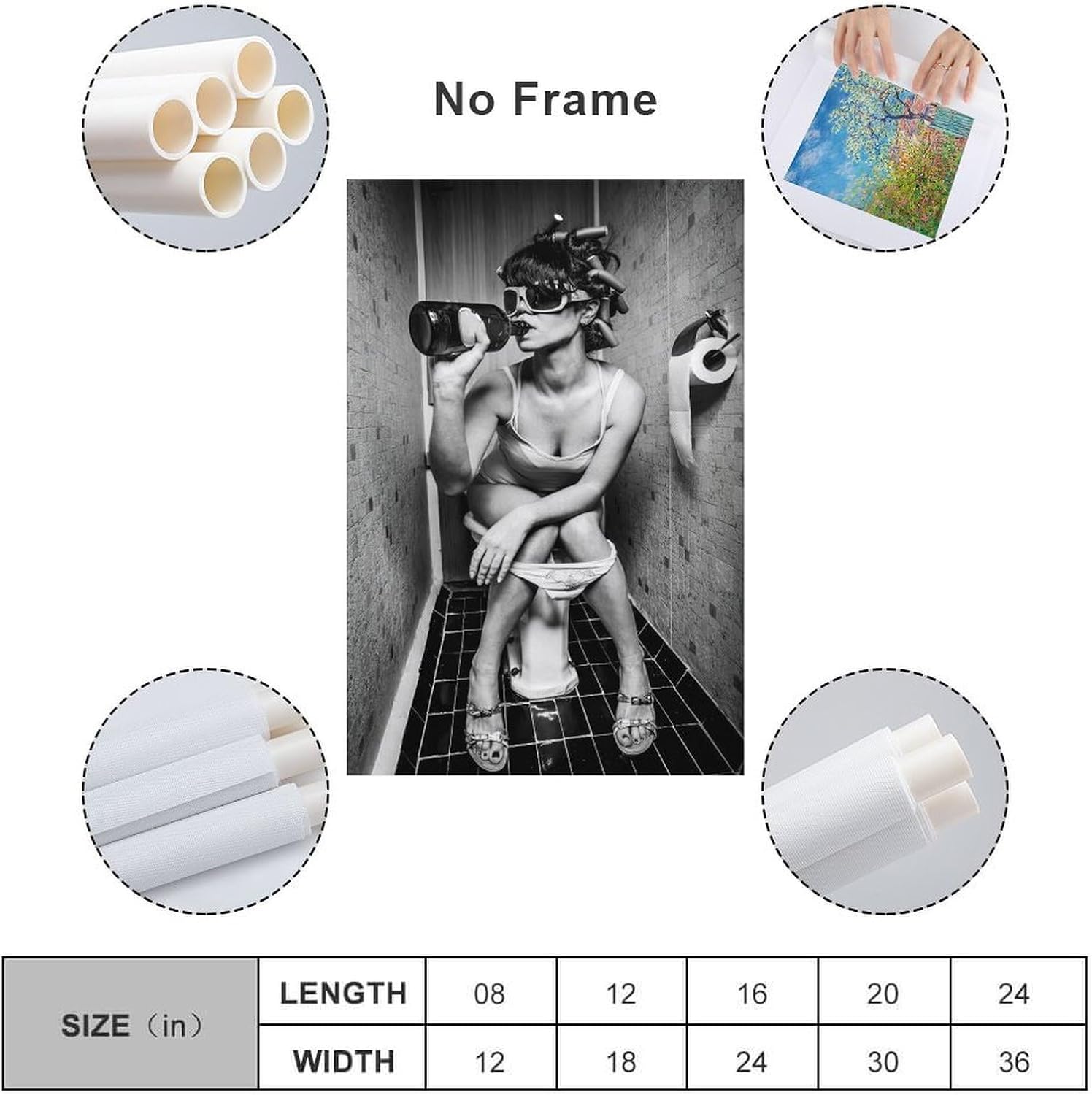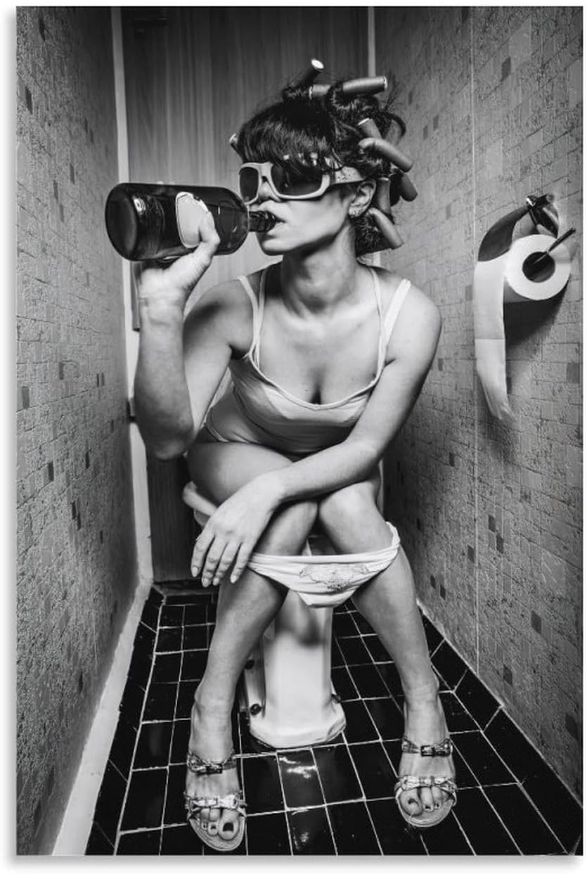 Woman Drinking on The Toilet Lnteresting Vintage Canvas Painting Wall Art Poster Room Decor Aesthetics 12x18inch(30x45cm)