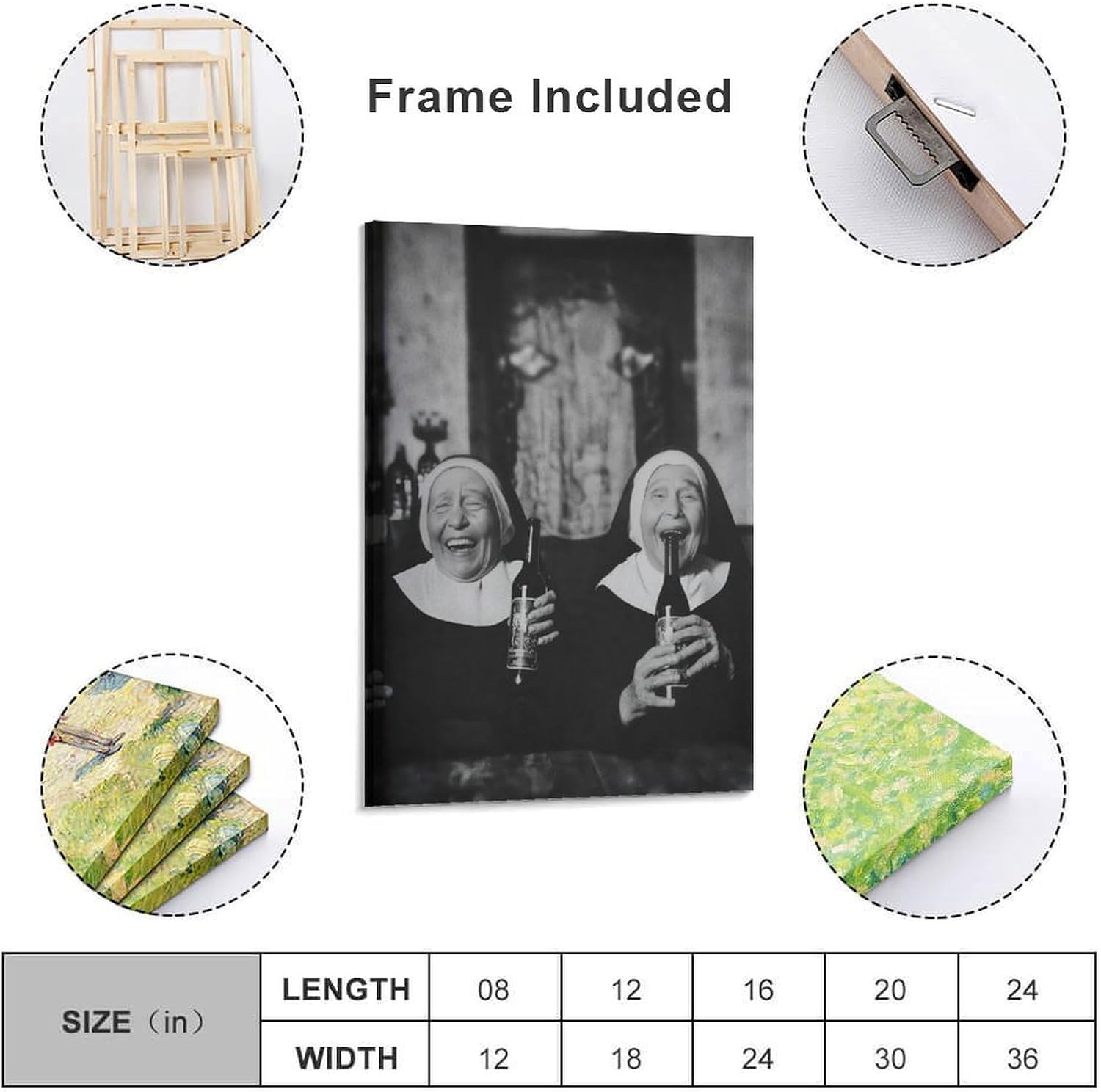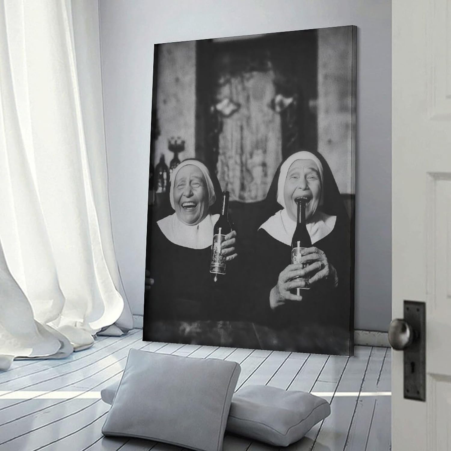 Nuns Drinking Wine Funny Living Room Print Humor Wall Art Decor Canvas Printing Poster, for Hallway Entry Or Living Room Vintage Funny Girls Portrait Gift for Friend 12x18inch(30x45cm)