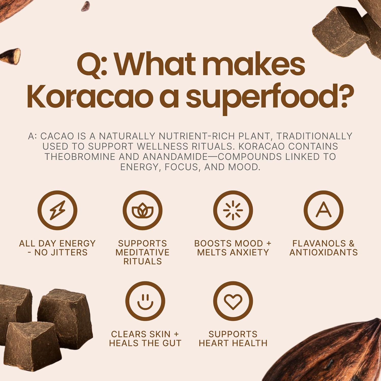KORACAO Sustainably Harvested Cacao | Ideal Superfood for Everyday Bliss | Ceremonial Grade Cacao | Enhance Your Spiritual Journey with Ancient Superfood Delight - 1 Pound