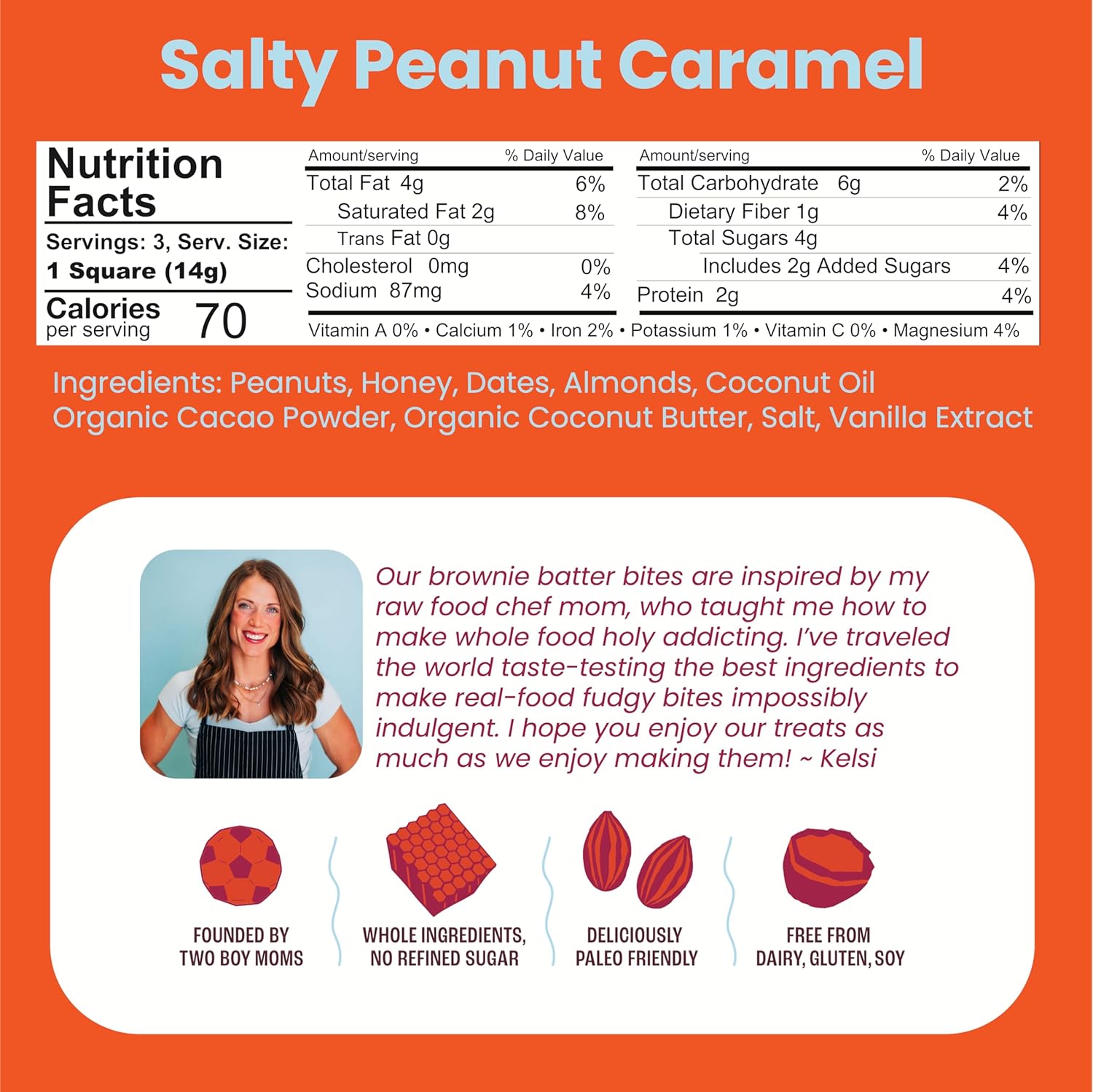 - 𝗠𝗢𝗠 𝗖𝗥𝗘𝗔𝗧𝗘𝗗, 𝗞𝗜𝗗 𝗔𝗣𝗣𝗥𝗢𝗩𝗘𝗗: Our clean & simple, convenient snacks have been tested and approved by dozens of kids (and parents!) in the extended Kelsi's family. They are a great healthy dessert, travel snack, or on-the-go treat.