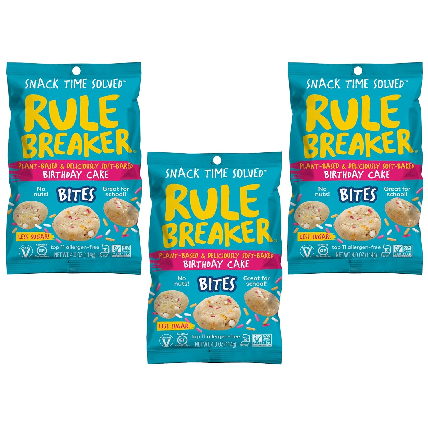 Rule Breaker Vegan & Gluten-Free Cookies | Birthday Cake Bites | Plant-Based, Dairy, Nut, Soy, Allergen Free, Kosher | Soft-Baked School Snacks for Kids and Adults (Pack of 3)