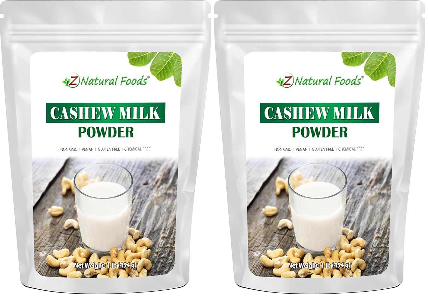 Z Natural Foods Cashew Milk Powder, Cashew Milk for Healthy Heart, Bones, and Skin, Ideal for Tea, Smoothies, and Recipes, High in Fiber, Non-GMO, Vegan, Gluten-Free, Kosher, 1 lb. (Pack of 2)
