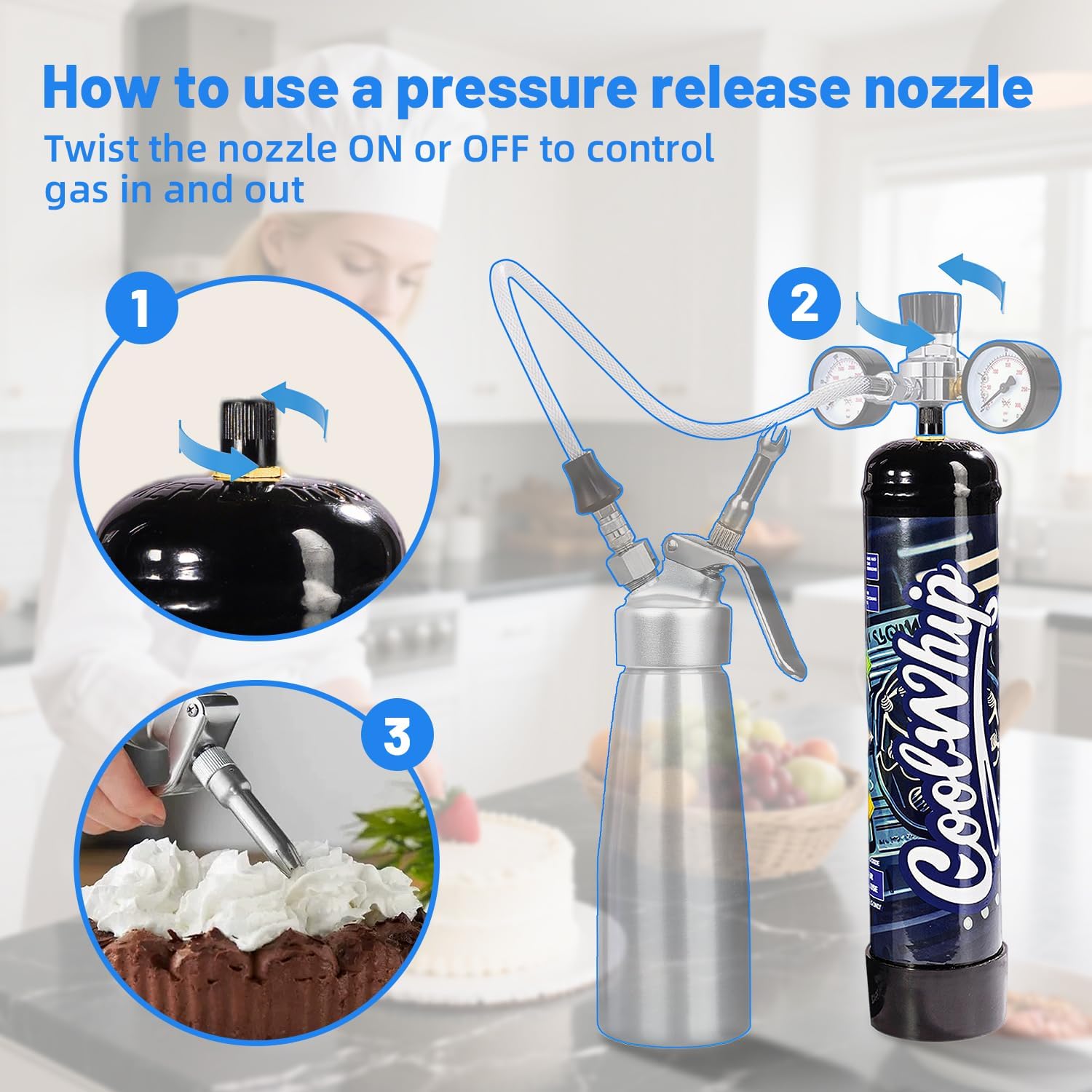 Whipped Cream Charger 740G Whip Cream Charger Cartridges Whip Cream Charger Cylinder Food Grade Original Flavor (Nozzle Included) 3-Pack