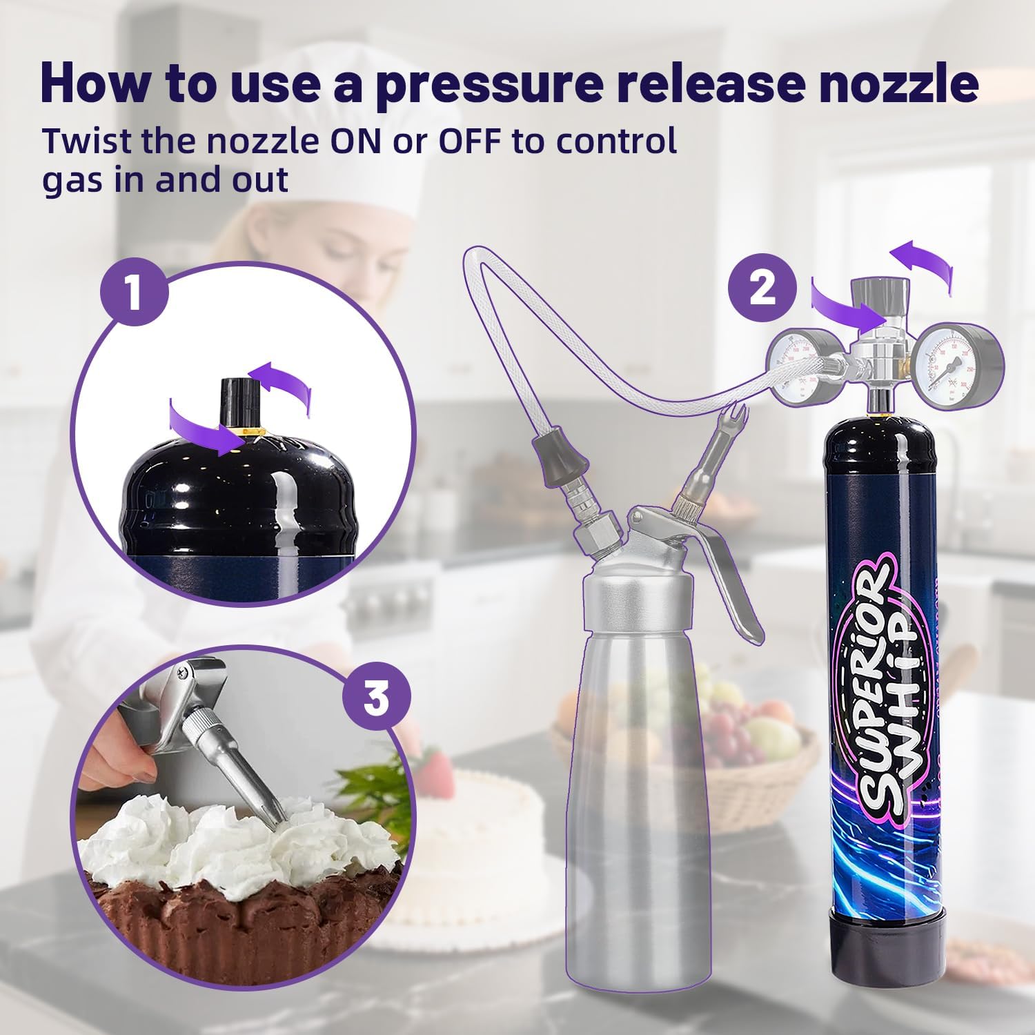 - Whip Cream Charger Cartridges Cylinder Food Grade Original Flavor (Nozzle Included), Whipped Cream Charger 740g, 3-Pack