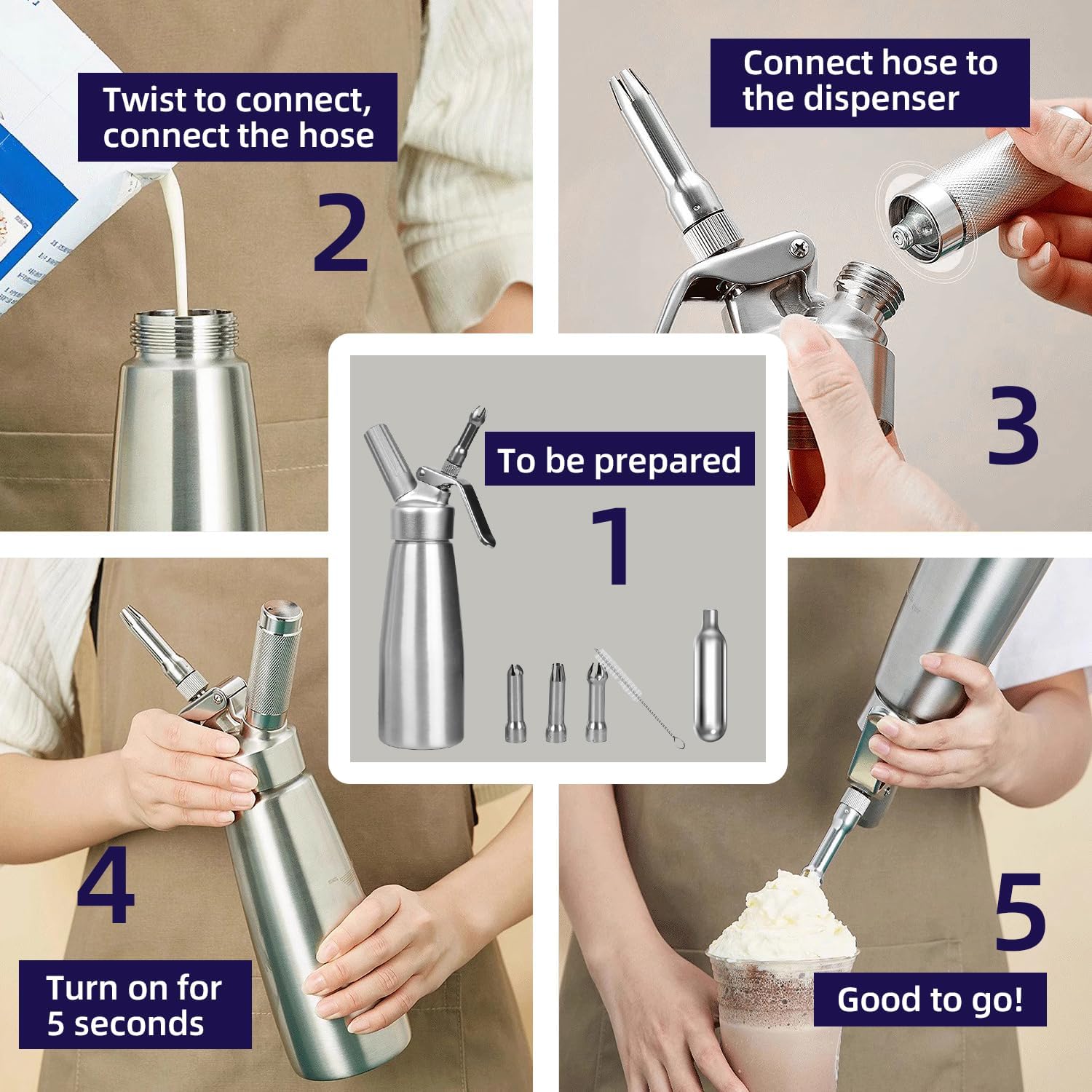 - Fits Most Whipped Cream Dispensers : Whipped Cream Charger Compatible with most standard cream dispensers. NOTE: Please do not leave the nozzle screwed to the cylinder to avoid leakage. Pressure-reducing valves and other accessories are sold separately